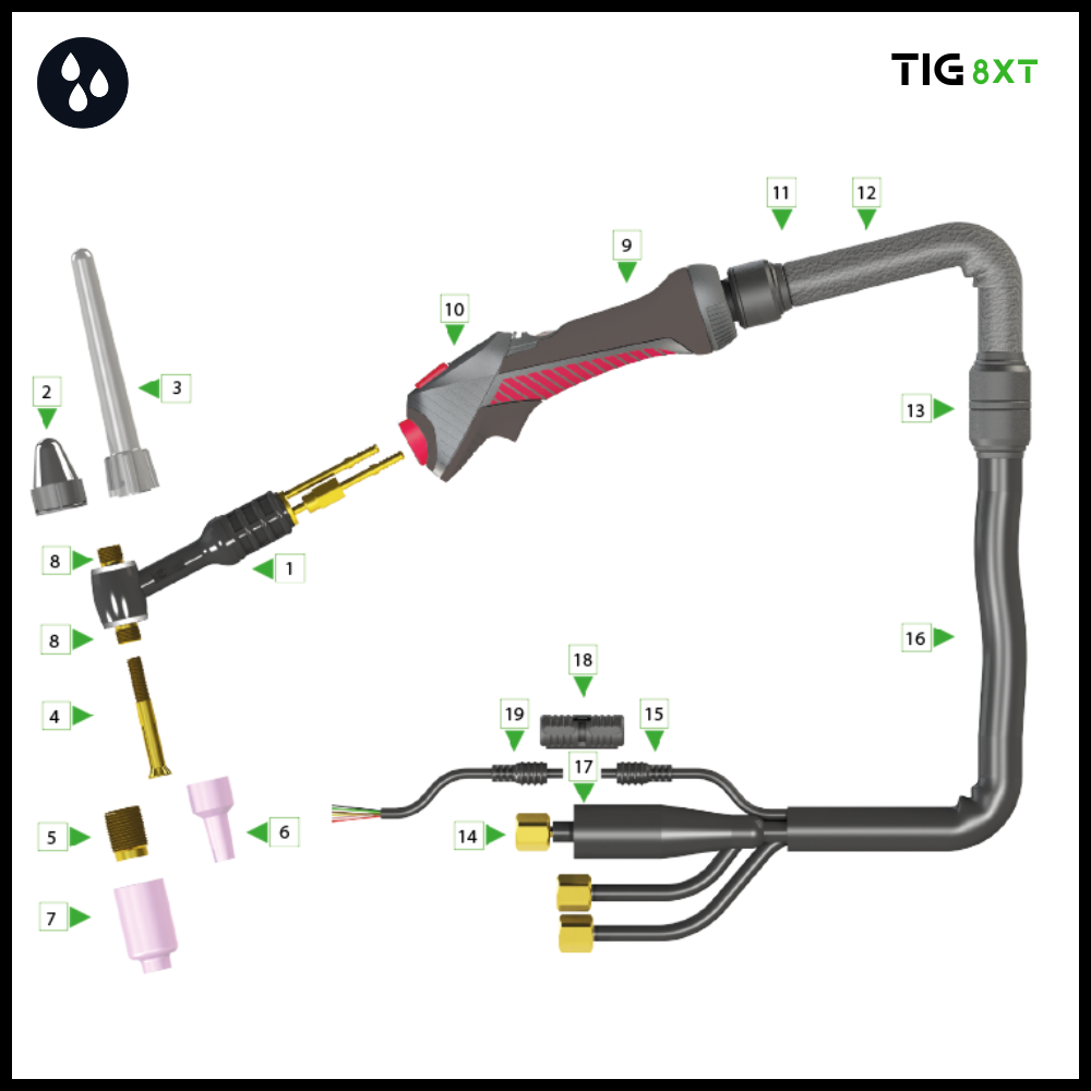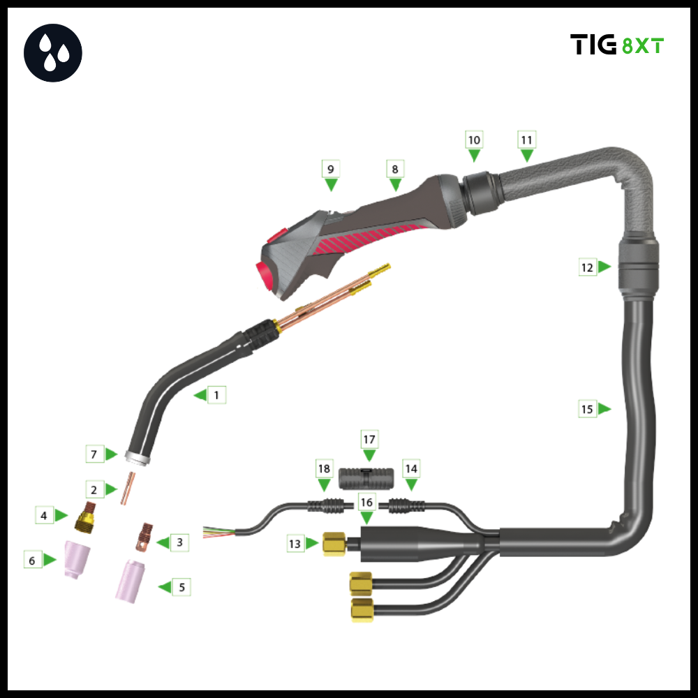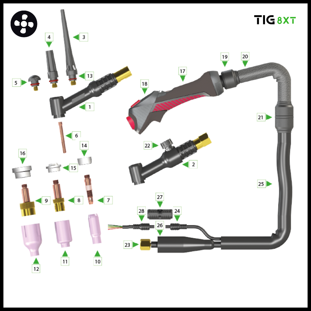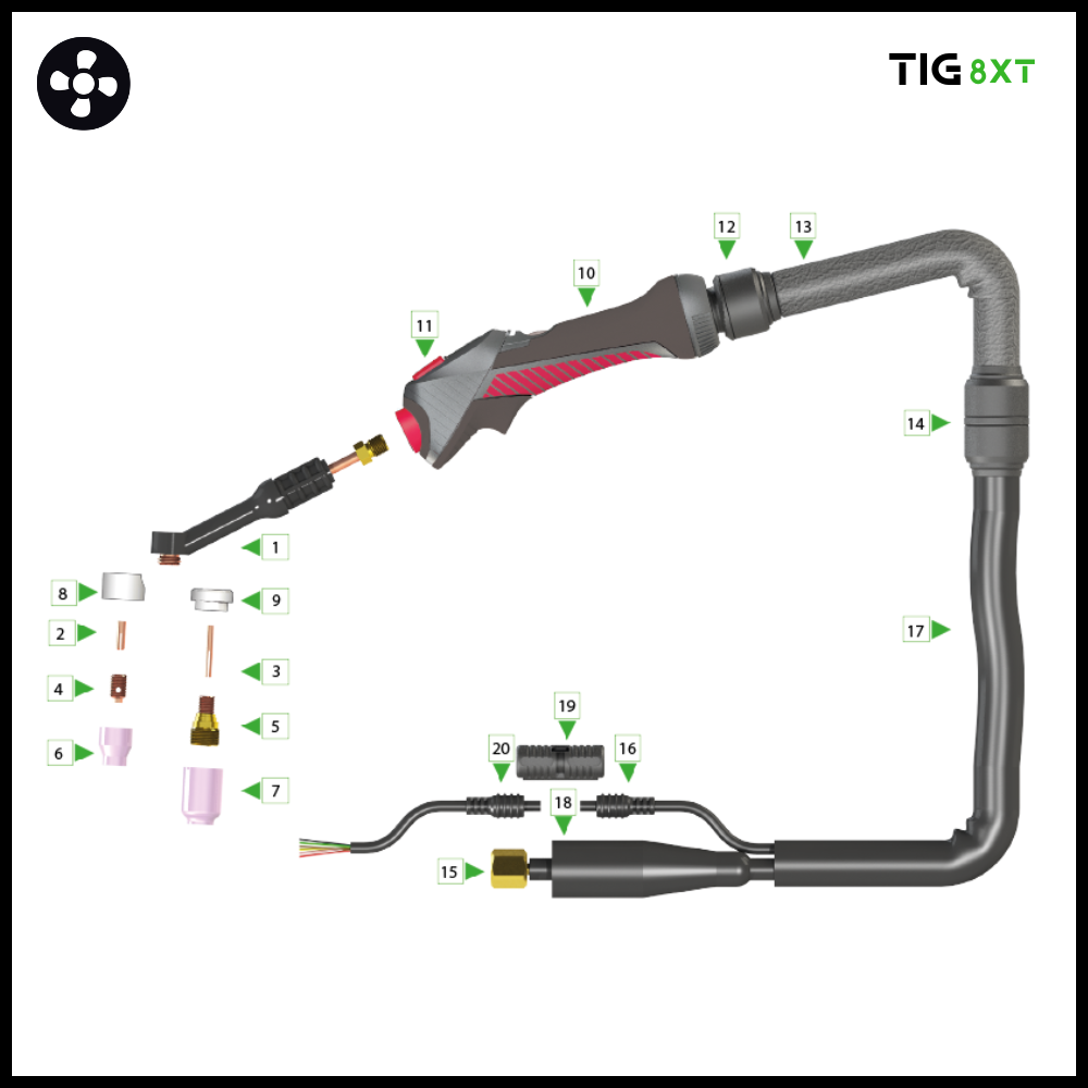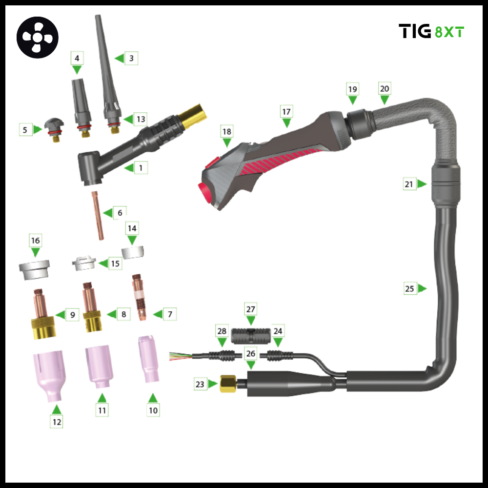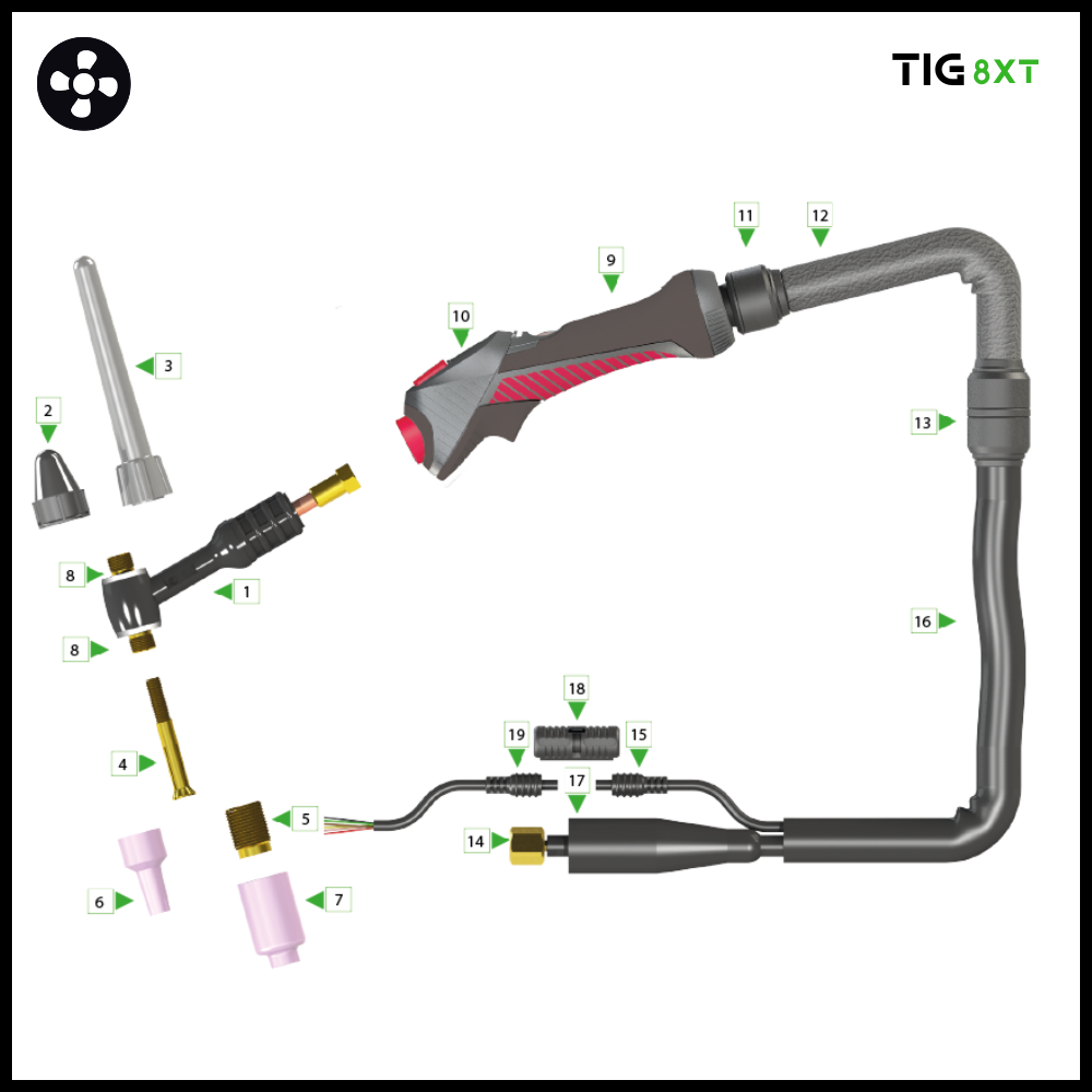 | 8X10010008210 | 8XT-9 Tig torch 8mtr 1/4’G | 1 |