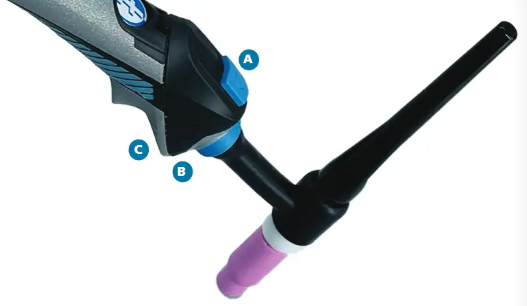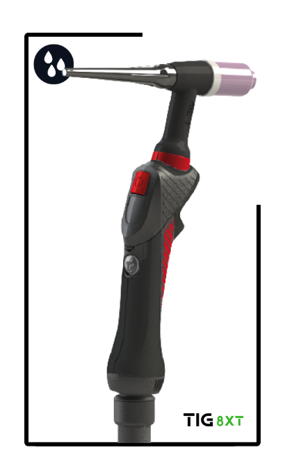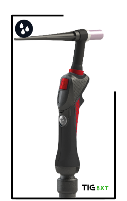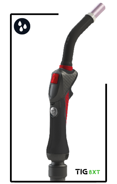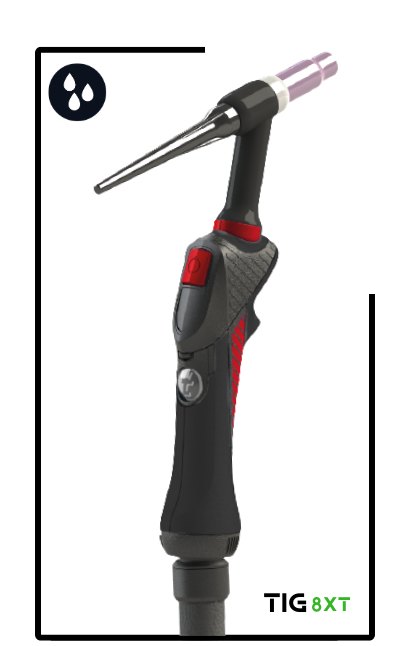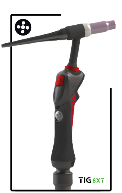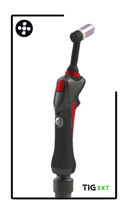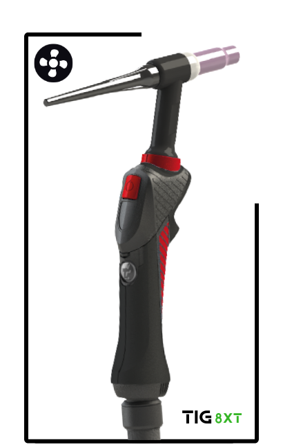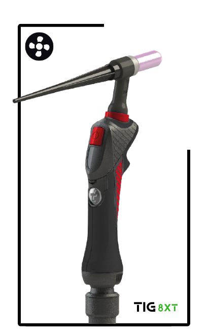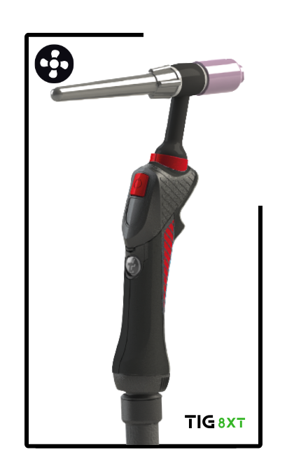 The design of the 8XT TIG handle has a unique ergonomic shape designed to suit the shape of the welder’s hand, fitting perfectly between the thumb and index fingers.