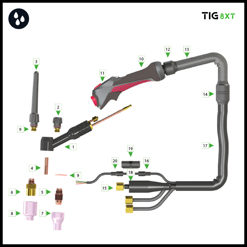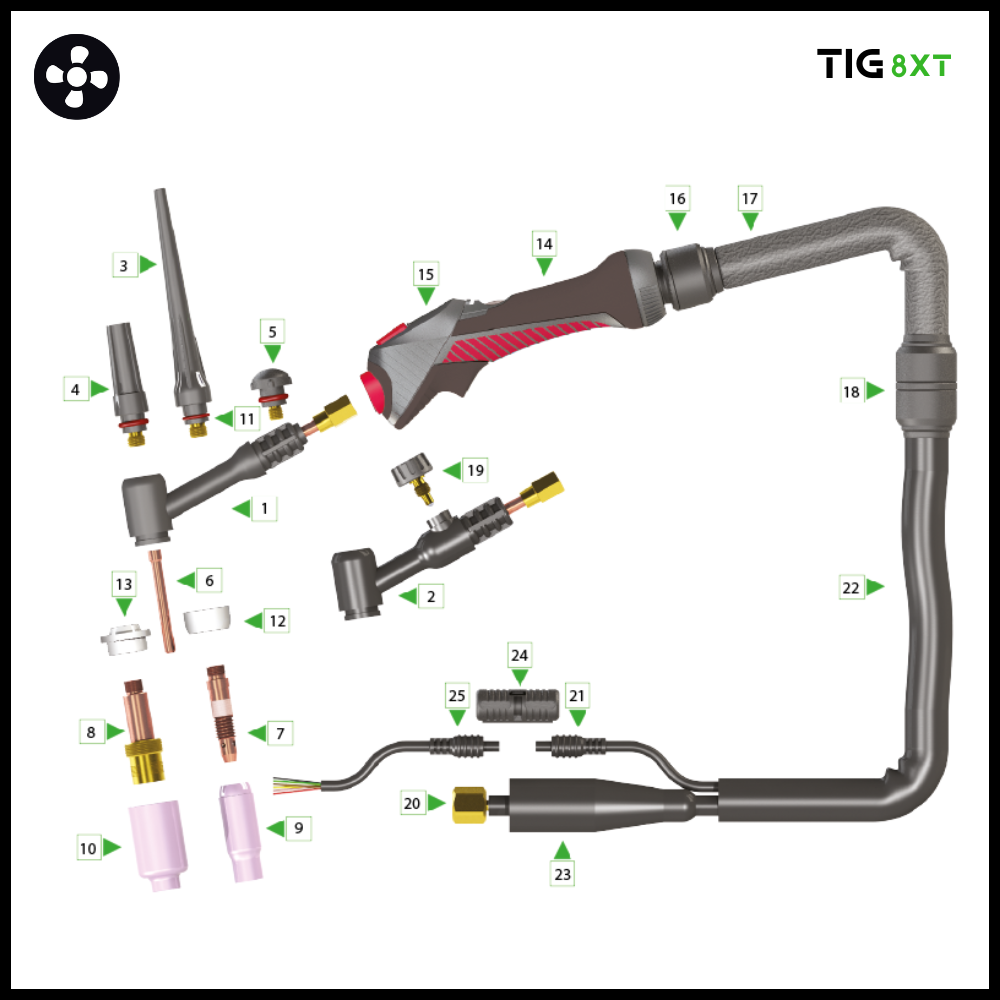 | 8X1100360840X | 8XT-9V Tig torch 8mtr 10-25mm² (2PC) | 1 |