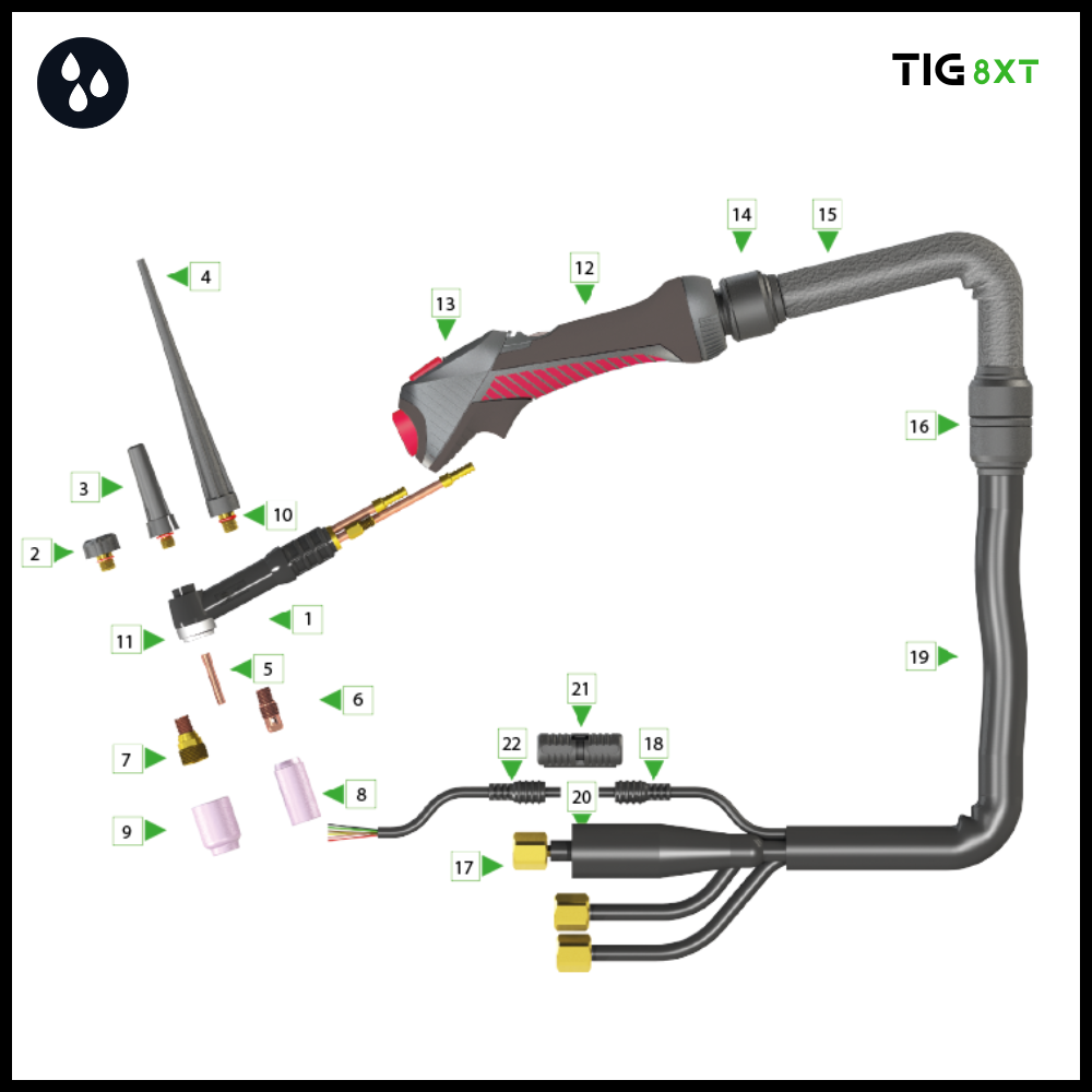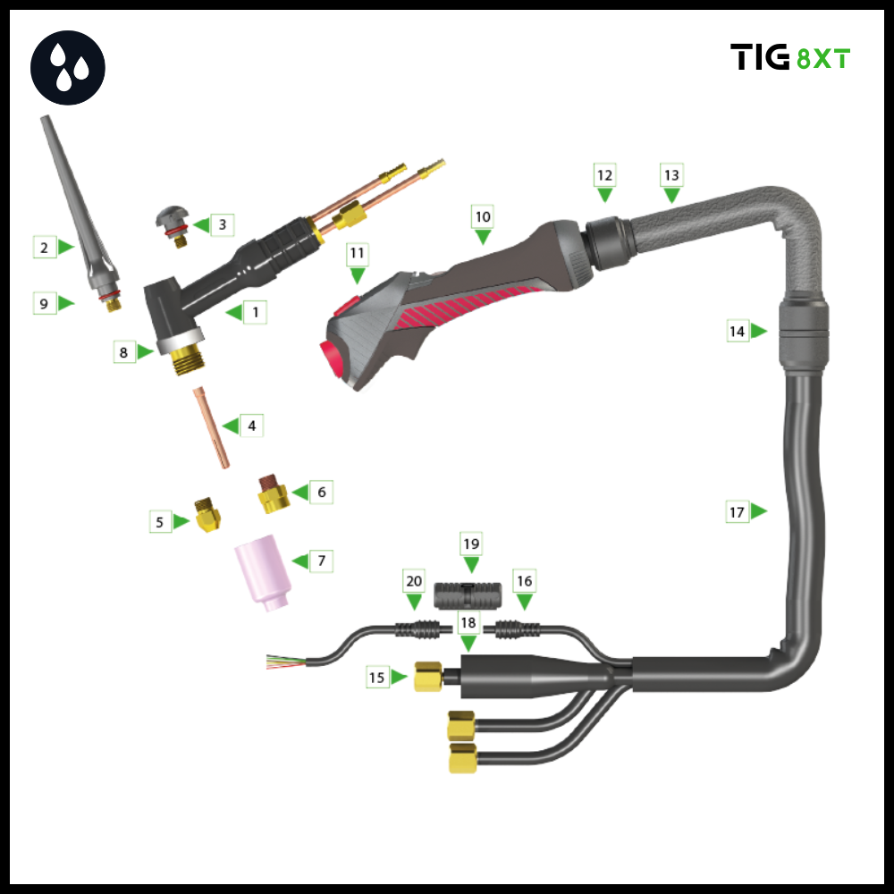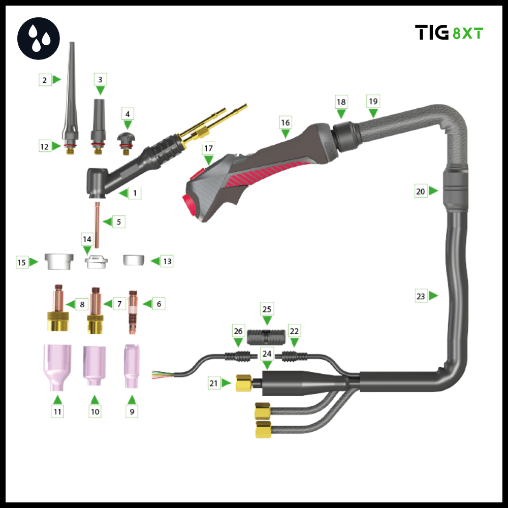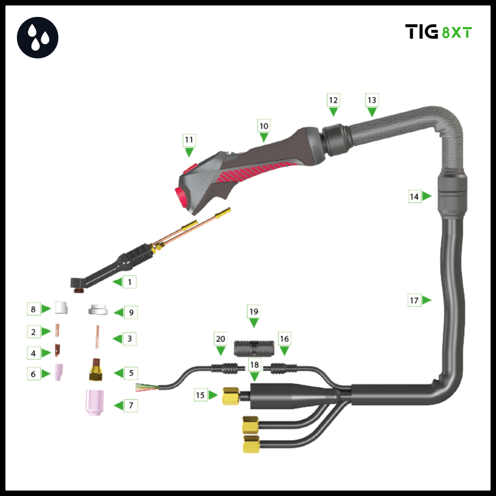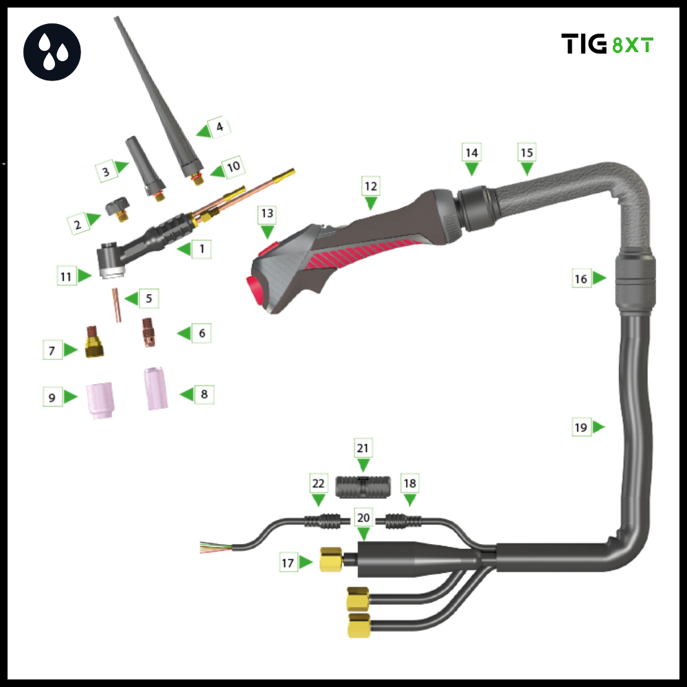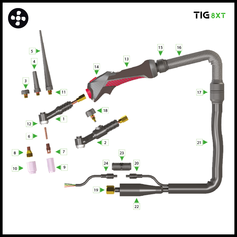 | 8X53014008800 | 8XT-24W Tig torch 8mtr 3/8’G | 1 |